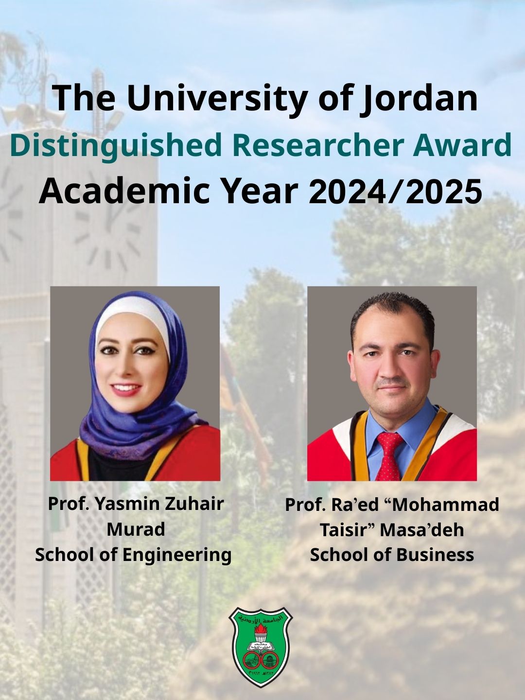 University of Jordan Deans’ Council Confers Distinguished Researcher Award on Two Faculty Members
