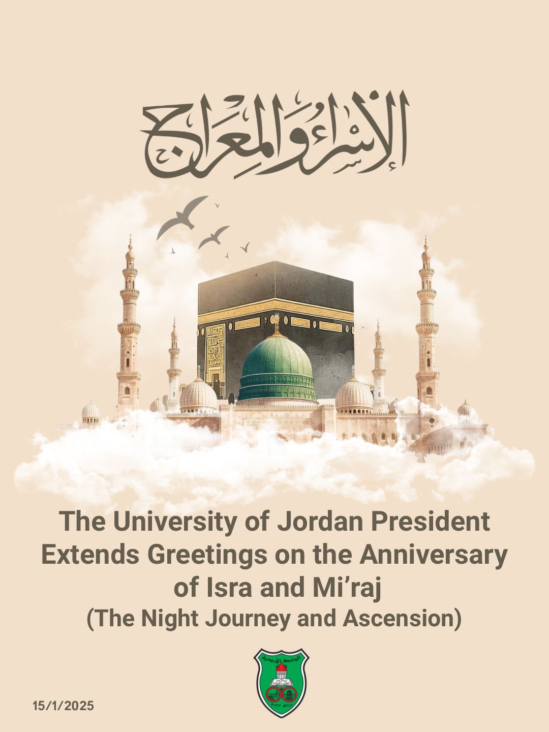 University of Jordan President Extends Greetings on the Occasion of Isra and Mi’raj